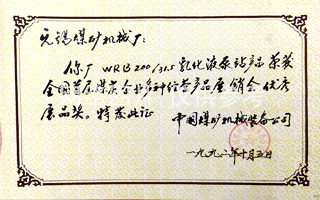 1992年榮獲國家首屆煤炭行業(yè)優(yōu)秀展品獎