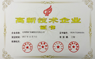 榮獲國家高新技術(shù)企業(yè)